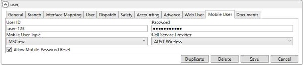 Utilize the Mobile User tab within Personnel Setup to establish crew access to MSCrew. Information established within this setup provides login credentials to MSCrew, use with the Local Service Information API, and to provide for the MSCrew Password Reset.