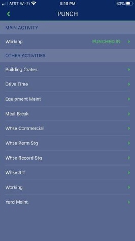 Click Punch In at bottom of screen. If already punched in, the Punch OUT option will appear.