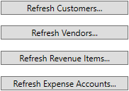 Once connected to QuickBooks, you can utilize the four Refresh options to pull in corresponding records from QuickBooks.