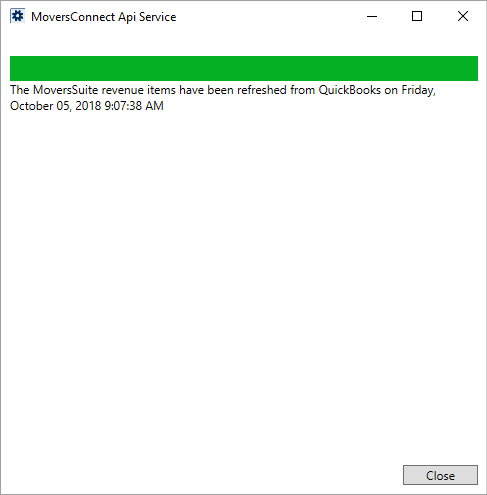 For the Verify and each Refresh option, you will receive a confirmation through a MoversConnect Api Service dialog.