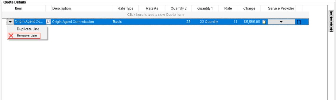 You can remove a Quote Item from the Quote tab by selecting the “Remove Line” option from the dropdown against each Quote Item while being in Edit mode.