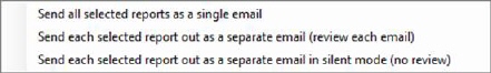 Send all selected reports as a single email This option creates one email message that includes all selected reports as an attachment to the message.