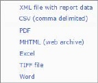 Export the report to one of the following selected file types. The application opens the report in the selected application. You can then modify the document and save it as a physical file.