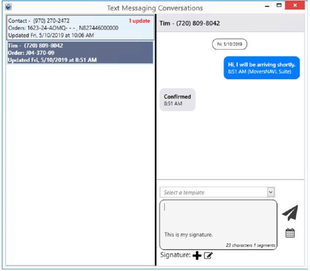 •Text Messaging Dashboard and Text Messaging Conversations dialogs are separate application windows that can remain open while you work in MoversSuite.