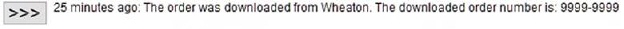 At some point, the order will update to reflect the order number sent back from Wheaton, as shown in the ticker update below. Once the order is established on the Wheaton side, then changes should only be made to the order through Wheaton.