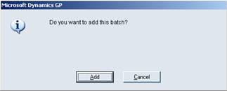 Each check will need to be part of a batch. Type in the Batch ID and tab. There will be a prompt to add the batch. Click on Add.