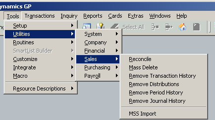 To import new MS transactions into Great Plains, we use the MSS Import.