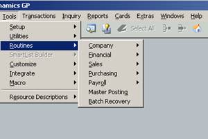 After MSS transactions are imported into Great Plains, a Great Plains user will post the transactions, usually from the Master Posting window. This is frequently the accounting manager. Not all users will have access to this window.