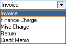 Document Type – Dropdown with 5 options (Invoice, Finance Charge, Misc Charge, Return, Credit Memo)
