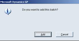 If this is the first transaction entry for the batch, a window will open with “Do you want to add this batch?” Click Add.