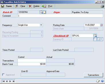 Batch ID’s must be entered. There is no Transaction Posting, only Batch Posting.