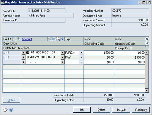 Payables Transaction Entry Distribution