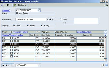 Inquiry>Purchasing>Transaction by Vendor